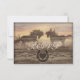 Two Horses Prancing at Sunset Rustic Country Western Wedding RSVP Cards. With barded wire, horseshoe and heart on the back side. Perfect for horses lovers, an equestrian themed wedding, or country western wedding. The design has two horse silhouettes on a distressed antique vintage barn wood background. Two Sided Design. Easy to edit template for unique response cards for your country wedding.