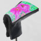 Two Hot Pink Plum Crazy Hibiscus on Lime Green Golf Head Cover
