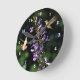 Two beautiful hummingbirds flying with purple flowers wall clock