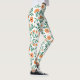 Two images of floral leggings showcase front and back views. Cream background with green leaves and orange flowers, paired with black sneakers.