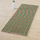 Two images showcasing a rectangular patterned fabric. The top image shows the fabric vertically, and the bottom image shows it horizontally. The pattern features a repeating design with green, red, and white accents on a brown background, creating a festive and intricate look.