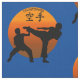 Two Karate Fighters With Rising Sun and word Karate in Japanese language in orange and black colours