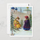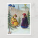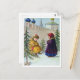 Two kids and Christmas trees under the walls Postcard