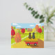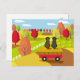 Two Labradors on the hay cart in Fall Postcard for Labrador Fans!! Chocolate Labrador and Black Labrador are stunned by the beautiful autumn view. Labrador Cartoon Design created by Naomi Ochiai.