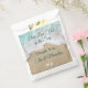 The playful and fun saying, Two Less Fish in the Sea accents this Wedding Favour Bag on a background of turquoise water, and beach sand. If you need help customising this item, or need additional coordinating items, just contact us at prettyfancyinvites@gmail.com with your request.