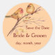 Two Little Bird Sparrows Peach Brown Rustic Nature Classic Round Sticker