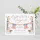 Invite your loved ones to celebrate the upcoming arrival of your two little cowgirls with our beautiful elegant boho Wild West twin girl western baby shower invitation. This exquisite invitation blends the charm of the Wild West with the elegance of boho design, creating a truly unique and memorable way to announce your baby shower. At the heart of our invitation design are beautifully hand-drawn wooden posts and rope with cowgirl dresses and a personalised bunt flag monogram hanging on the rope line. Surrounding the wood posts are our gorgeous, hand-drawn watercolor florals. These delicate flowers frame the central design, adding a touch of natural beauty and elegance to the invitation. Lace details. Personalise the invitation with all the important details of your baby shower, including the date, time, location, and twin's monogram. Hand-drawn watercolor illustrations and design by Moodthology Papery