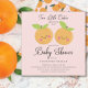 Two little cuties are on the way baby shower design featuring adorable little clementine oranges set on a light pink background. Flip our invite over to view a coordinating back with oranges set on a pink background. Visit our shop to view our adorable little cutie design collection.