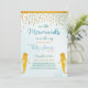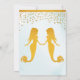 A Baby Shower invitation with the theme "two little mermaids are on the way". On the front, there are golden glitter hearts on the top, and the words "two little mermaids are on the way" and "Baby Shower" is stylised. On the back, the same background as in the front, and also two golden glitter silhouettes of a mermaid, which you can move or resize by clicking on "Edit using Design Tool". If you have any questions or would like a similar design for a different occasion, feel free to message me on Zazzle.
