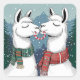 Two llamas Kissing and Sharing a Candy Cane Square Sticker
