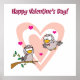 Two birds in love surround by hearts with Happy Valentines Day above them. This design looks really effective on these Poster