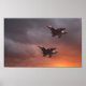 US Air Force McDonnell Douglas, two USAF low flying F-15E Strike Eagles at sunset. High speed low flying fighter jet, with a beautiful orange glowing sunset. Located near RAF Lakenheath in Suffolk England