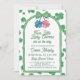 Are you blessed with two little lucky charms, a girl and a boy, and want to throw a four-leaf clover themed baby shower? This twin baby shower invitation has a pair of four-leaf clovers, one blue and one pink, tied with a green bow. The background features a matching clover pattern, all in a charming hand-drawn style.