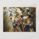 Two Magic Cats in a Steampunk Fantasy Scene Postcard