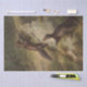 This design features a painting by the German artist Johannes Christian Deiker (1822–1895). It shows two martens climbing on a rock in a forest landscape. A marten is a weasel-like mammal that has a bushy tail and large paws with partially retractile claws. The small mammals appear to be acting aggressively with each other. The martens have brown fur and tails; their furry bellies are white. There are many trees and much greenery behind the two animals.