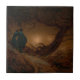 Two Men Contemplating the Moon at Night Tile
