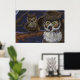 An original illustration of a pair of horned owls resting on some tree branches and enjoying the night, with the moon shining in the distance. Hang this poster in your bedroom for sweet, comforting dreams. This owl poster would be a great gift idea for bird lovers.