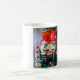 A pair of cheerful nutcrackers with a small Christmas tree in the background to make your hot cocoa more festive