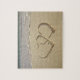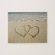 Two overlying hearts drawn on the beach jigsaw puzzle