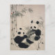With a single black ink, painter depicts pandas by a full range of hues. Bamboo is painted tall and straight, with leaves swaying and singing to the wind. Chubby and cute, two giant pandas here are outlined by pale colour. Added with dark ink on their eyes, ears, and legs, the subjects characterise as plumpy and lovely. Twoness always has a propitious meaning in Chinese culture; a pair of chubby pandas further stands for reunions, harmony and happiness. Plants also have good meanings, such as bamboos suggesting intergrity. Depicting with these two fortunate objects, this picture thus is full of auspicious wishes.