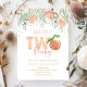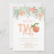 This adorable invitation features a watercolor peach, flowers and faux gold glitter confetti.