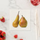 Two pear fruits of different shapes isolated against white background. These fruits resemble male and female figures, leaned to each other. Napkin for anyone