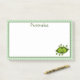 A green pea pod surrounded by green leaves. Inside the pod snuggled up together are two adorable peas with the cutest faces. Across the top is a text template which you can use to personalise.