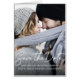 This modern Save the Date Card begins with your couple's photo. Save the Date is written in large stylish white calligraphy. Two lines of text below let you personalise your message. A special overlay guarantees that your white text will pop no matter your photo. Inside the card there is another photo and a longer message for you to personalise.