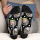 These cute black grey pet photo or child photo socks feature two photos -- of either your pet or pets, child, children, or family pictures, in a row pattern with white triangles, and are the perfect custom socks to feature your child, husband, wife, dog, cat, or anyone you love! This is the perfect gift for the sock lover and a great Christmas stocking stuffer!