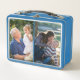 This is a standard metal lunchbox that appears to work just fine. We designed this box ourselves with an uploaded photo and custom text on the front and back. It looks absolutely beautiful except the front of the lunchbox is not centered like it shows in the photo. The print borders don't align with the inset flat part of the box where the preview photo online showed it perfectly centered in there. The back looks nice and centered though.