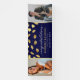 Celebrate graduation with a unique, modern flare. Our joint graduation party banner boasts a sophisticated navy blue backdrop that can be customised to any colour, featuring two photos of the proud graduates. It's adorned with chic faux gold foil mortarboard caps cascading down the banner, alongside an easy-to-personalise text template. This is not just a banner - it's a keepsake of a memorable milestone.