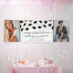 Modern joint graduation party banner featuring a simple white background that can be changed to any colour, 2 photos of the graduates, falling black mortarboard caps, and a modern text template that is easy to personalise.