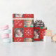 This Christmas gift wrapping paper offers a red background with two photo frame for your favourite family photos. The red background is accented with a white snowflake and custom text for a message and your name.