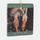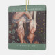 Sage green Two Photo Minimalist Best Friend Snowfall Christmas Holiday Keepsake Ceramic Ornament featuring two personalised pictures in any size of your beautiful memories into a snowfall holiday frame and custom modern sans serif font text. Show your love to your friend, girlfriend, parents, and any special person for you!