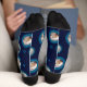 Fun circle pattern socks with two photo option. The socks are intended for pet photos, but you can add any family photos! Great unique photo gift.