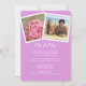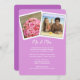 Double photo, marriage announcement and reception invitation cards in shades of lavender purple. Announce the marriage location and date and invite friends and family to a reception for the newlyweds. Two angled, framed, square photos are easy to add to the top of vertical cards with white text. Not all sizes will work with this design.