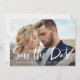 This whimsical and elegant save the date card features two of your favourite personal photos, with trendy white handwritten script on the front, and all of your wedding information on the back. A simple and modern look that will fit perfectly with your style!
