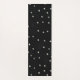 This yoga mat is black with white stars and two pretty brown owls with golden eyes sitting on tree branches wearing blue necklaces.