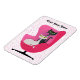This flexible magnet has two pretty mid century style cats one white and one black sitting together in a bright pink chair wearing diamond collars on white with hot pink polka dots.