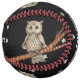 This custom softball is black with white stars and two pretty tan owls wearing blue necklaces sitting on tree branches. Customise your text with the templates.