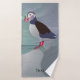 Two Puffins Design Bath Towel Set with customisable personalisation or other text. NOTE: if you want NO TEXT, you must delete the sample text and leave the personalisation box blank.