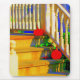Two pumpkins sit on sunlit porch steps in this celebration of autumn. Perfect for Halloween or any other fall occasion. Digital painting from a photograph by Liza Dey.
