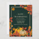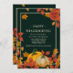 A dramatic invitation to Thanksgiving feasting featuring two pumpkins and fall foliage against a black background. (<a href='https://www.freepik.com/free-vector/thanksgiving-day-posters-in-vintage-style_1429935.htm'>Designed by Freepik</a>). <br/><br/>The card is easy to customise with your wording, font, font colour, paper shape options and choice of six paper types.<br/><br/>Not exactly what you're looking for? All our products can be custom designed to meet your needs at no extra charge.<br/><br/>Simply contact us at heartfelthelper@gmail.com.<br/><br/>Coordinating products available: Just ask us!