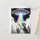 Two Raccoons and Rainbow UFO in wildflower meadow Postcard