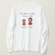 Personalise this shirt with your daughters' names. Upper text is also customisable. This design features two princesses in red dresses. The princesses have brown hair and wear tiaras.