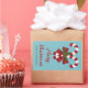 Destei's original illustration of two red and white striped Christmas candy cane treats decorated with a red bow and a Christmas holly / Common holly plant. The background colour is blue. There are also two personalizable text areas.
