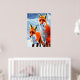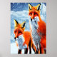 Two cute and adorable foxes outside in the snow one winter day. This is a AI generated art.