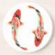 Two beautiful red and white koi swim on this high quality coaster, almost forming a ying-yang.