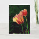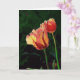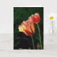 Inside inscription (may be modified or deleted): "May nature's delight Brighten your day!" A pair of parrot tulips with brilliant red petals reach for the morning light.