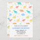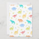 Visualise the top of the invitation adorned with a lively jungle pattern of colourful dinosaurs (blue, green, yellow, orange) against a clean white background! 🌈🦕 This vibrant design sets the stage for a lively 2nd birthday dinosaur theme celebration, creating an atmosphere filled with joy and excitement.